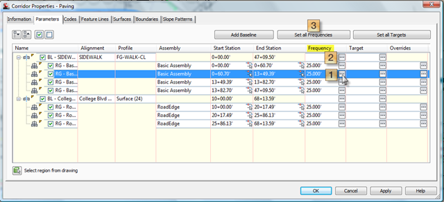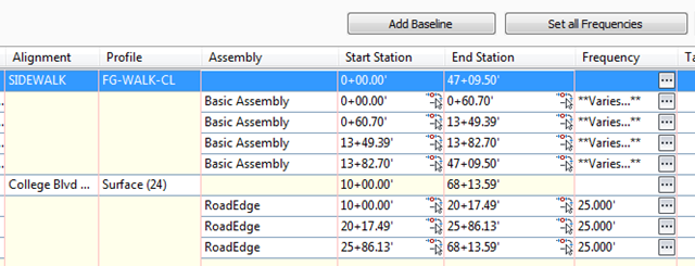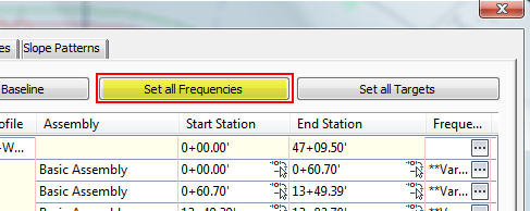 That’s where the Frequency header comes in.  Picking it will give you global reach over the entire station range in any particular baseline. In the example below, the frequency interval is being selected for the entire baseline of the Sidewalk.