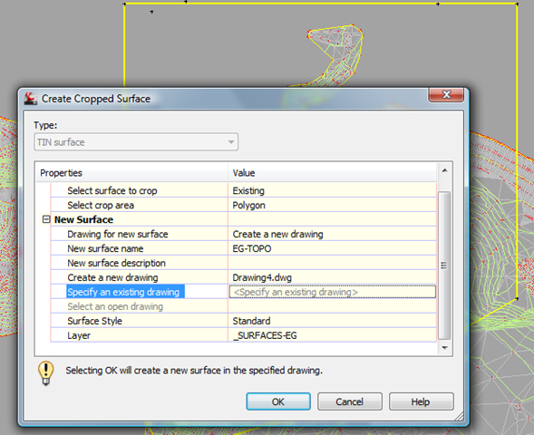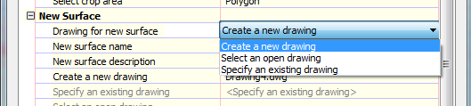 Pull this down and select where you want the new surface to be stored: A New Drawing, an Open Drawing, or an Existing Drawing.