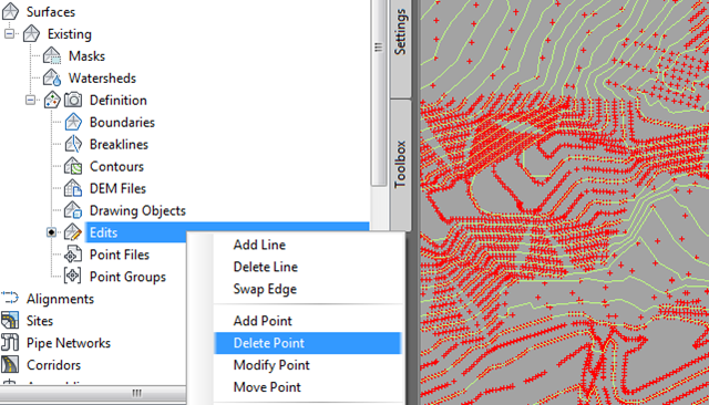 This tip is for anyone trying to cut down a huge surface by directly editing the points or triangles. Maybe you don’t have 2011, or are not on subscription (and really wish you did right now). Deleting points or lines is the standard way to take the surface down a notch without losing any precision. However, if you are trying to edit a very large surface, you may find problems and lockups trying to delete thousands of lines or points during the edit procedure.