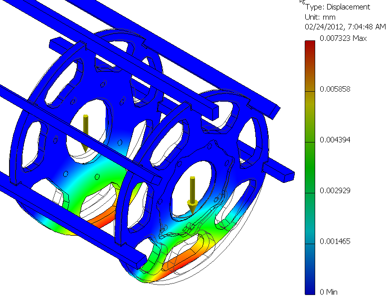 What I wanted to point out is that each static stress analysis load in Inventor is the sum of the applied forces, meaning that these are ‘shared’. When you pick two faces during the load assignment, Inventor splits the load over the number of faces selected. In this example, each face is only experiencing 3000 N.