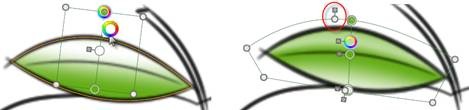 Dragging the bounding box warps the fill relationships. If you need some curvature, just add more grips by picking along edges of the bounding box. If you need more colors, just pick along the control line, ad more color grips are added. Subsequent tuning of colors and shaping of the fill will achieve any arrangement of fill and shading.