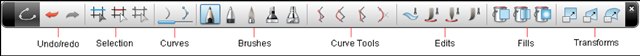 The toolbars are populated with tools based on layer context, divided into application and manipulation tool groupings.