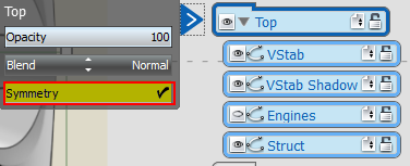 • Both Folders and Layers offer Opacity, Blend, and Symmetry options, independent of one another