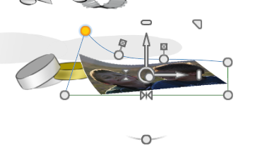 Object translation and warpage is achieved via an object manipulator, or through the Attribute editor. When an object is selected via a vector edit tool, the manipulator appears representing the extents of the object, (or objects if a grouped folder was in focus).