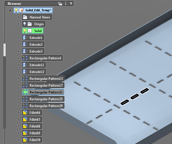 Once in Fusion, each feature can be manually selected and, using the delete key, quickly removed. This takes a lot of time, and features are sometimes overlooked. Fusion’s ‘Find Features’ tool is wonderful.
