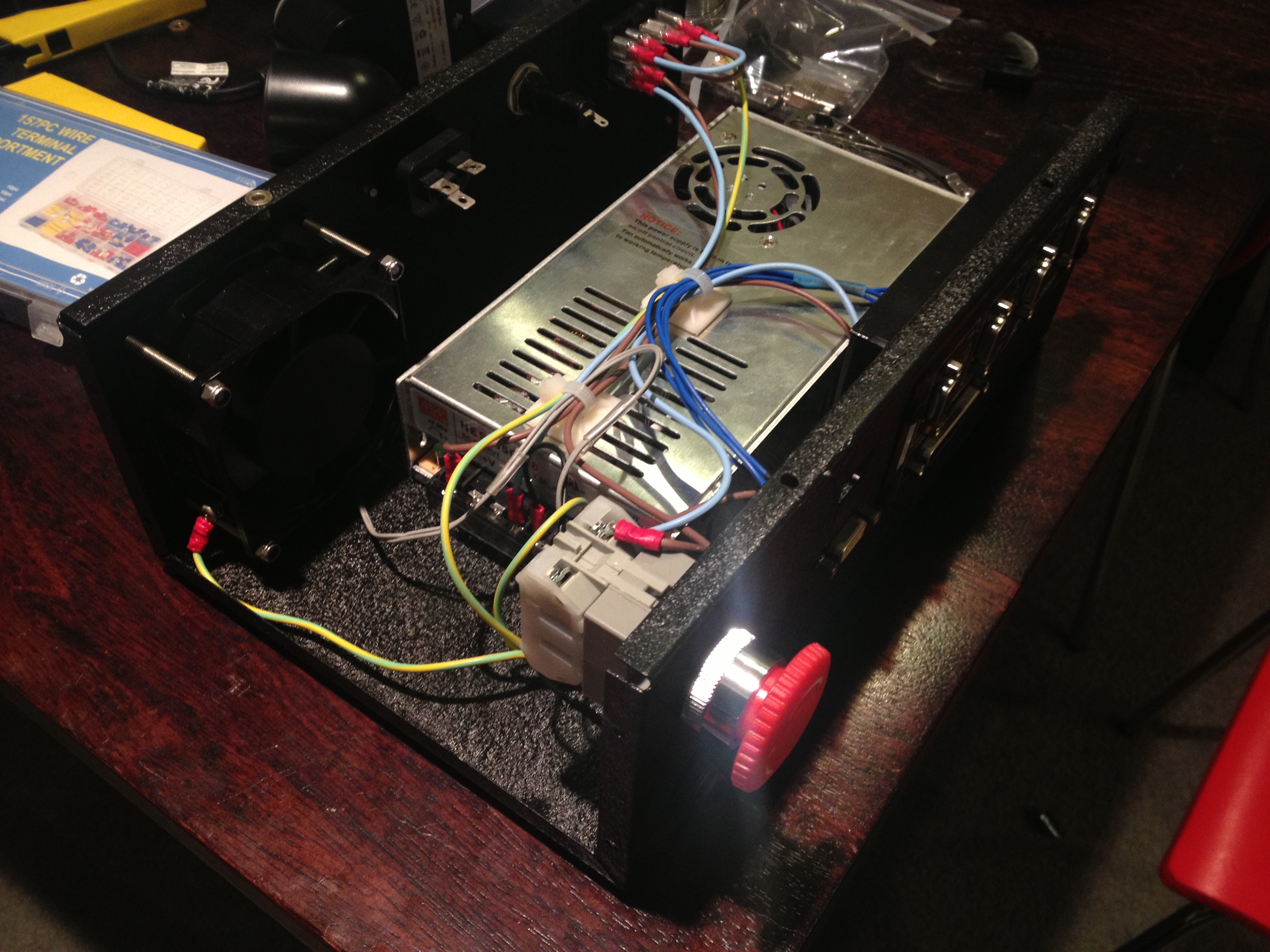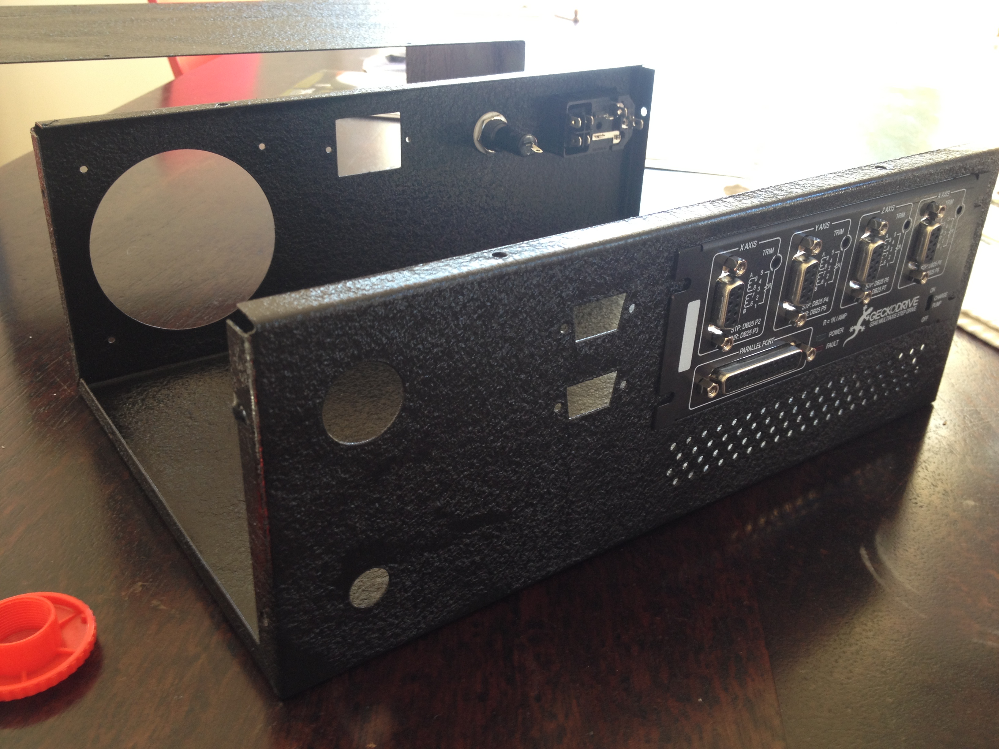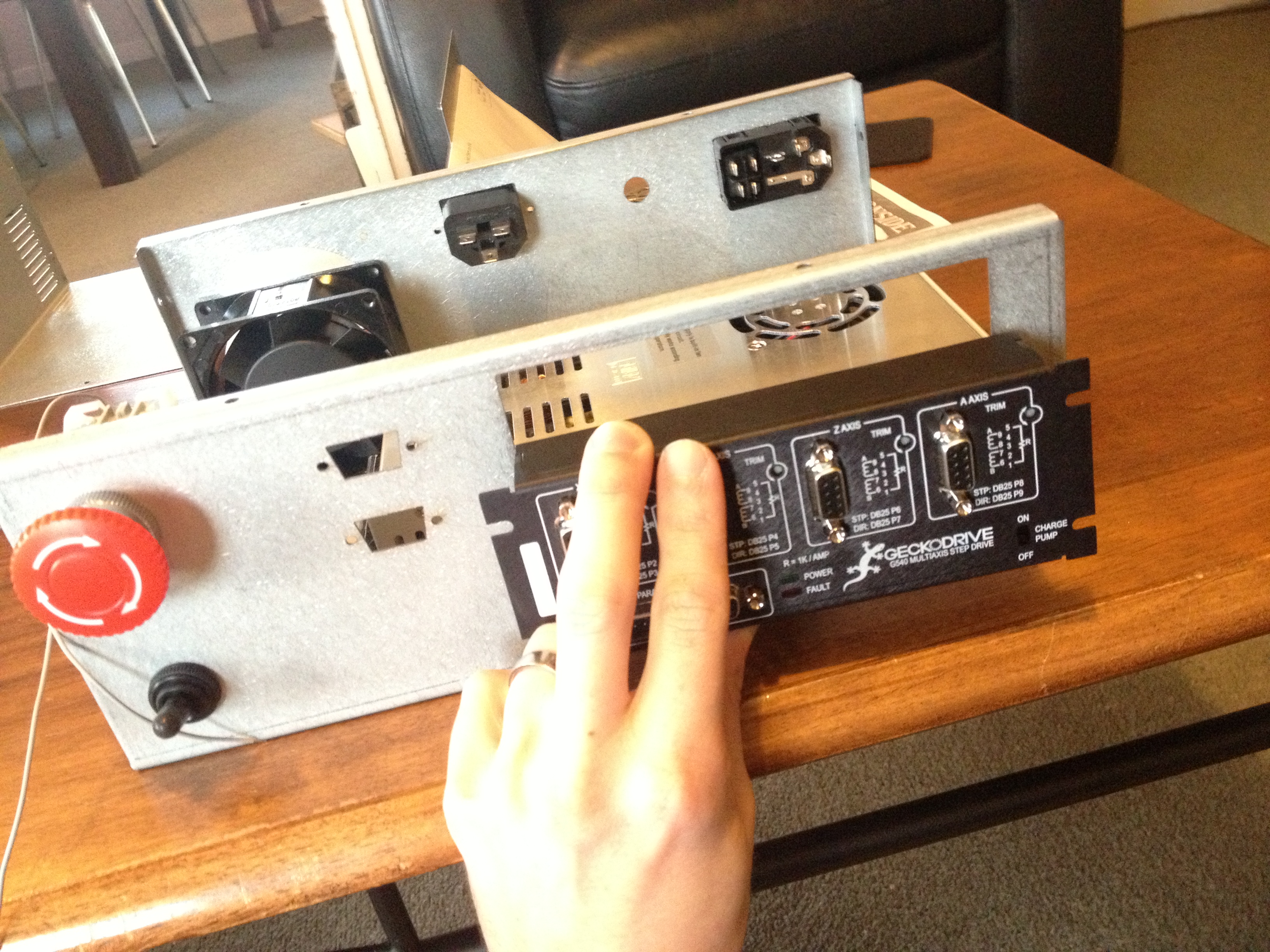 The G540 needs a power supply which is capable of running all 3 or 4 motors. For converting AC-DC, switch mode digital conversion is a lot more efficient than the old coil type transformers. This type of technology has come down in price a huge amount over recent times, and so selecting a suitable supply was a pretty easy task. I found an Australian supplier who sells a lot of DIY CNC components and he had some reasonable pricing on Meanwell power supplies. I went with the 7.3A 48V DC unit here. I also got a few other miscellaneous items like a power socket with integrated fuse holder, and some switches.