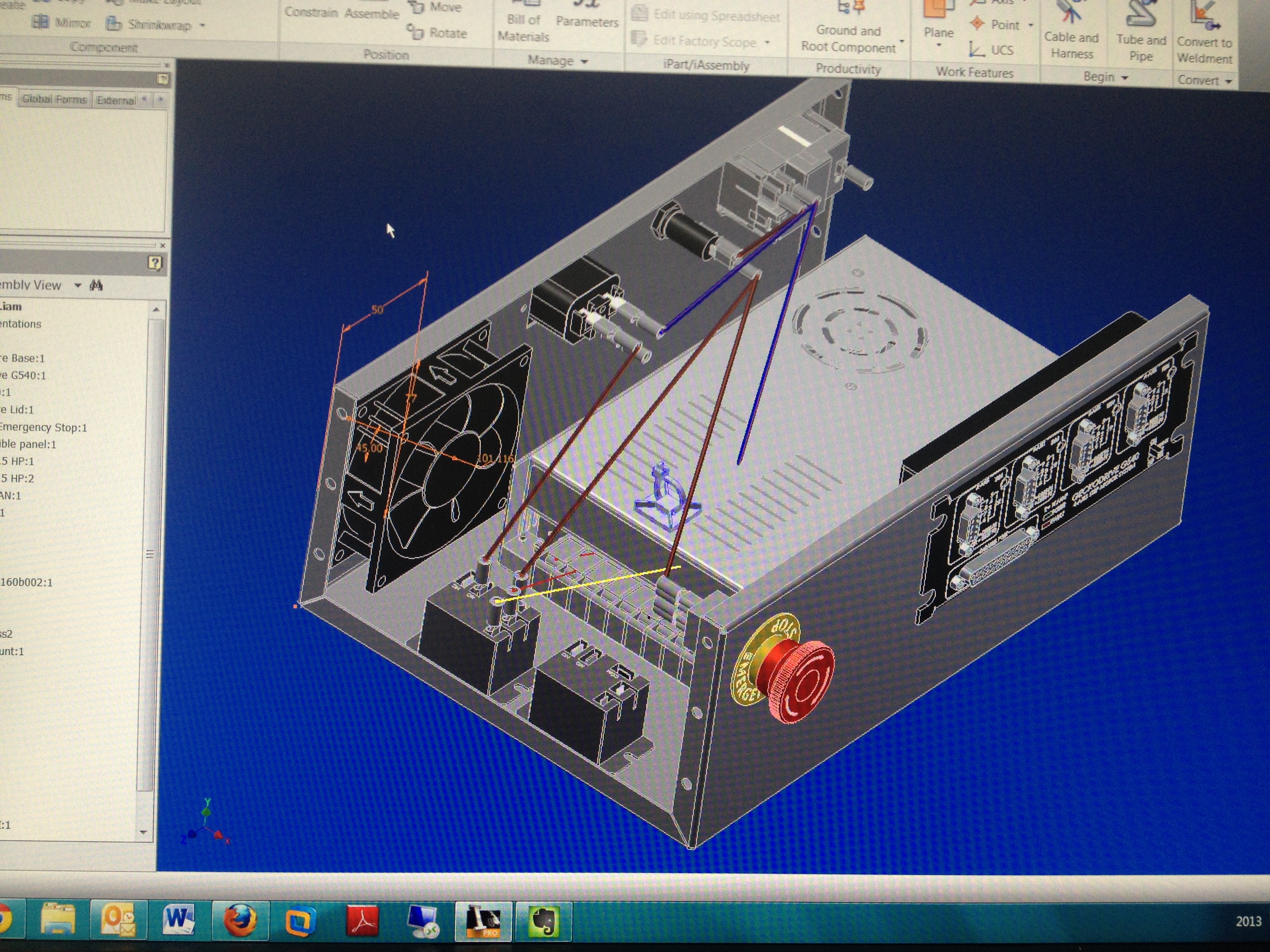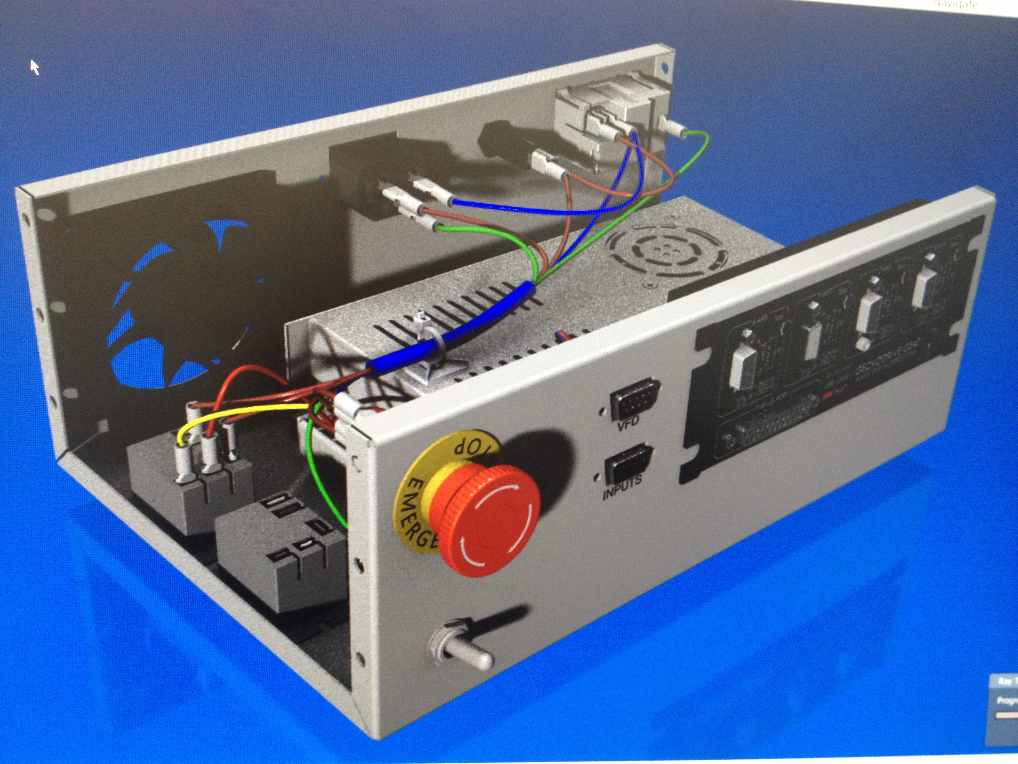 Now that I had all the bits, it was time to work out how to package them up. Of course, I went straight to my indispensable 3D Digital Prototyping Swiss-Army Knife…… Autodesk Inventor. I started by placing models of the electronic components in 3D space, roughly where I wanted, then designing a sheetmetal enclosure to suit. I used Inventor’s wiring tools to create a simple loom and work out where I wanted to run the wiring. Trev from Hitech Sheetmetals then got to work, and produced a beautiful enclosure that exactly matched my digital model. A quick test fit of the components was followed by a spray of some wrinkle-finish paint, and the enclosure was ready to be fitted up. You can see the process in pictures in the slideshow below.