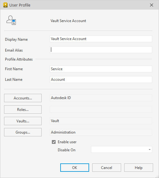 So I created a new Autodesk user and assigned them a Vault Pro license. I added this new service account user to Vault (remember, they must sign in with their Autodesk ID). I added the vaults I wanted to map to PLM. To keep it simple, I named it the Vault Service Account, but it can be whatever you want.